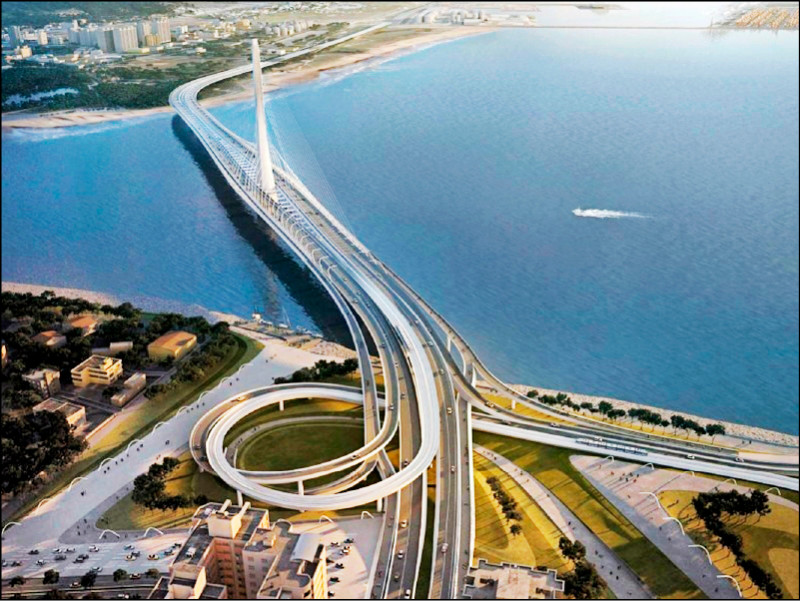 公路總局證實淡江大橋將延展工期至二○二六年二月,最快二○二五年底完工。圖為完工示意圖。(取自新北市府官網)
