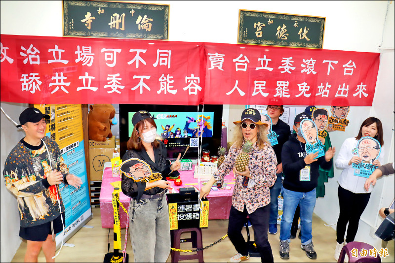 「雙和罷團」成立罷免總部,為「倫刪寺」與「伏德宮」匾額揭幕。(記者翁聿煌攝)