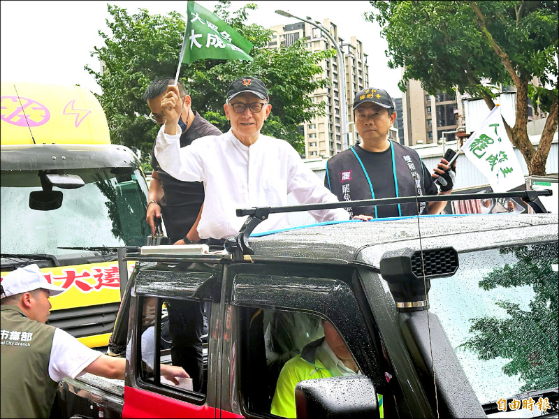 反共護台志工聯盟董事長曹興誠加入車掃。(記者陳奕劭攝)