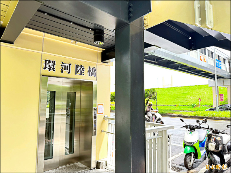 三重區環河陸橋增設水岸電梯。(記者羅國嘉攝)