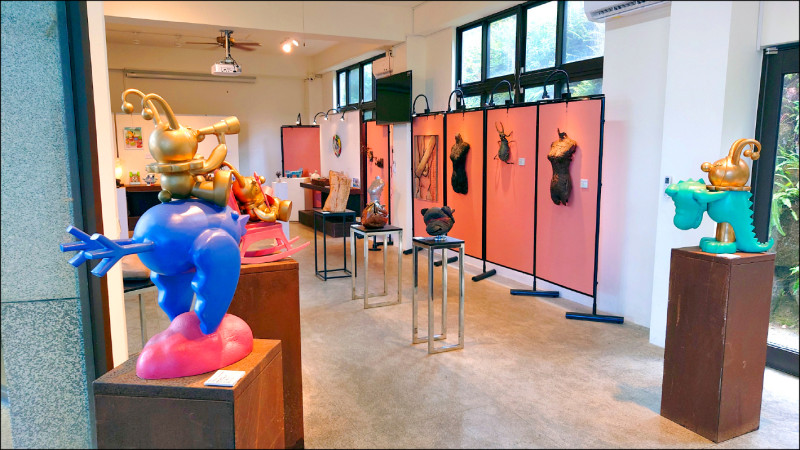 新北市三芝茭白筍節系列活動,首波登場的「茭白筍藝文雕塑展」即日起至十一月廿二日在興華驛站農業及藝術教育中心展出。(三芝區公所提供)