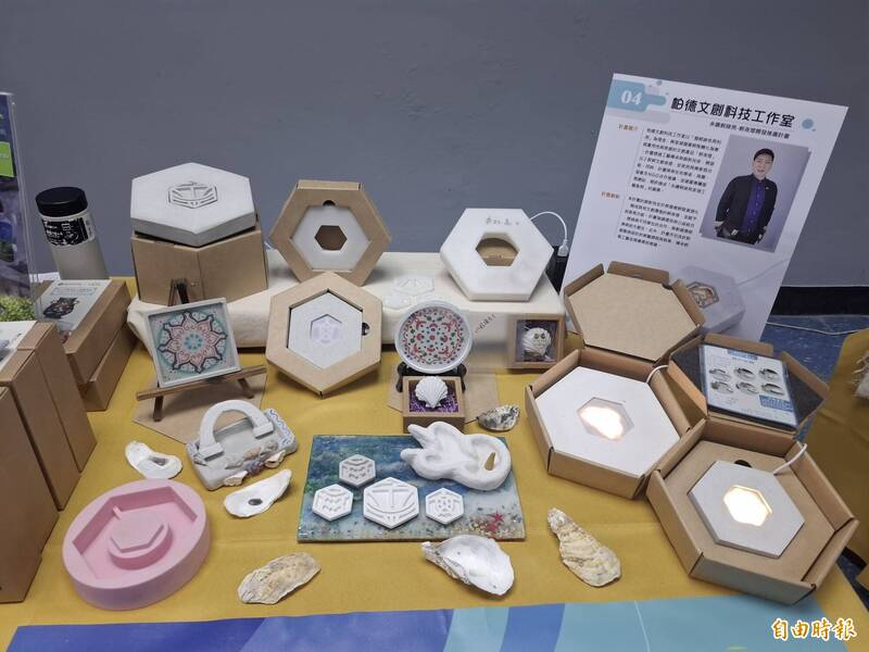 牡蠣殼粉再利用,搖身一變成為美麗藝術品。(記者劉禹慶攝)