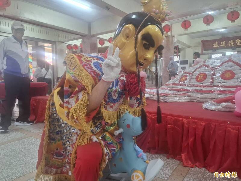 三太子喜歡玩搖搖馬,讓元宵慶典更富人情味。(記者劉禹慶攝)