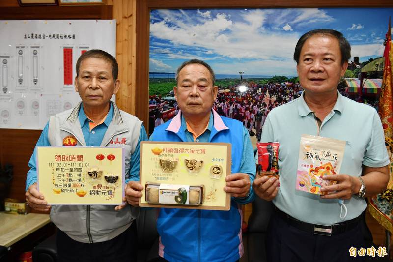 「仍依中央疫情指揮中心指示。」福德宮總幹事張榮志說,除夕拜頭香活動特別準備特有的大金元寶(內嵌五十元)1枚,加上虎年紀念金幣1枚及團圓麻吉1條;主委謝登勇表示,春節期間年初一至初六,舉辦新春祈福系列活動,除了每天3000枚開運金幣,還有躦轎腳、擲五色杯等祈福儀式。