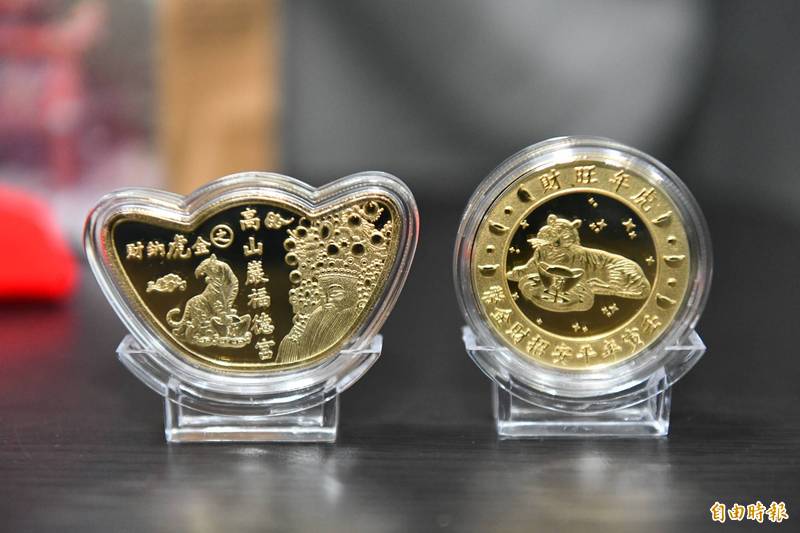 福安宮初一至初五每天上午十點及下午兩點發放虎年金幣。(記者蔡宗憲攝)