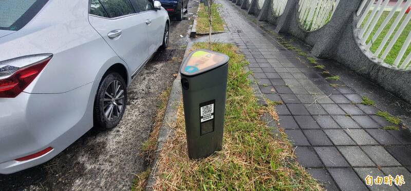 路邊智慧型停車柱。(記者葉永騫攝)