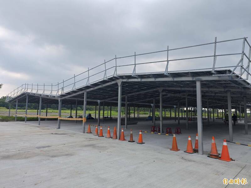 鎮公所說,這片光電棚沒有鐵皮,是直接用光電板及鋼骨骨架搭設,在兼顧結構安全下,廠商每年約可回饋近200萬元給公所,若人潮不多時,亦可作為臨時停車使用,但最主要的還是得標商以工程專業解決當地排水問題,也因此項目成為評選時的最優廠商。