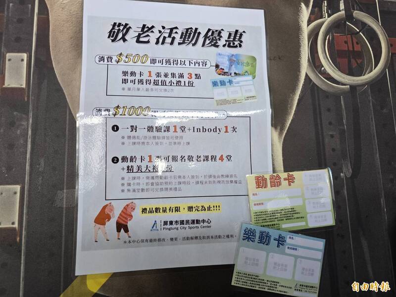 屏東市國民運動中心提供銀髮族各種優惠。(記者葉永騫攝)