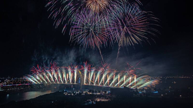 鵬灣大橋成為無人機及煙火的最佳表演場地。(鵬管處提供)