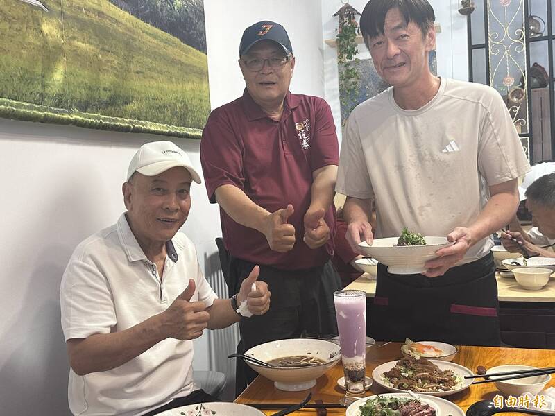 恆春鎮長尤史經(左一)在品嚐後也讚不絕口,認為冠軍主廚回鄉創業,對提振地方觀光與餐飲水準具有正面指標意義。(記者蔡宗憲攝)