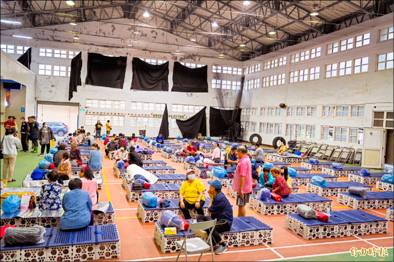 滿州鄉進行預防性撤離至滿州國中。(記者蔡宗憲攝)
