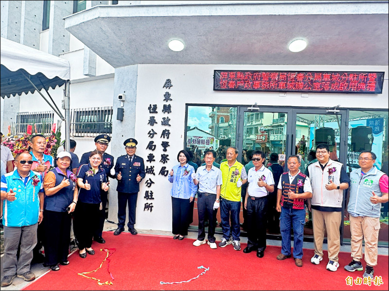 恆春警分局車城分駐所暨恆春戶政事務所車城辦事室,以及車城國小射寮分校新建學生活動中心,昨同步舉行啟用揭牌儀式。屏東縣長周春米表示,偏鄉公務機關也必須能提供鄉親舒適的洽公環境,這是落實城鄉平權的重要一環。