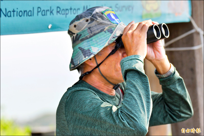 恆春數鷹達人蔡乙榮強調,「不是一眼看穿算總數,而是用基數去點,像銀行員訓練數鈔票。」(記者蔡宗憲攝)