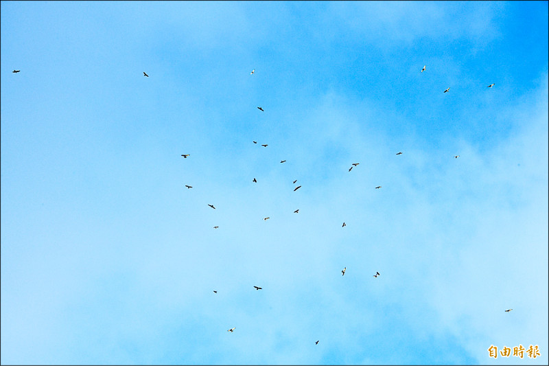 赤腹鷹成群南飛,總數突破歷史紀錄近39萬隻。(記者蔡宗憲攝)