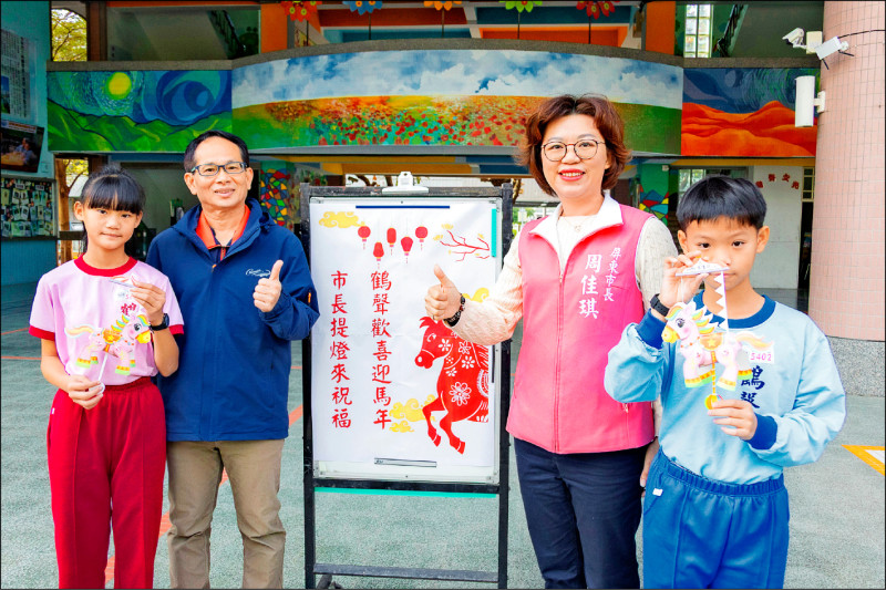 迎接寒假與元宵佳節到來,屏東市公所今年推出全新設計的「歡樂馬」小提燈,昨天在鶴聲國小首度亮相,由市長周佳琪送到小朋友們手中,公所除了提供一.五萬個小提燈分送全市國小、幼兒園小朋友,也另準備兩千個,預計本月底開放市民索取。