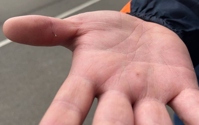 王男手掌突被蜂螫。(記者許國楨翻攝)