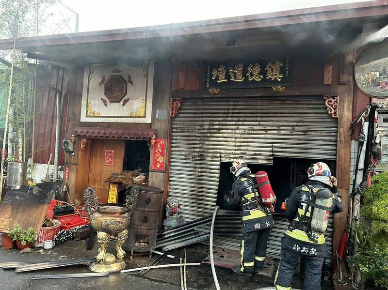 消防人員抵達時,發現一間神壇已經起火燃燒,火勢相當猛烈,火勢並向右側還有後方民宅延燒,立刻佈水線搶救,消防人員鋸開神壇鐵捲門進行滅火,並將隔壁民宅內一名平時就需要使用氧氣機的老翁救出送醫安置。