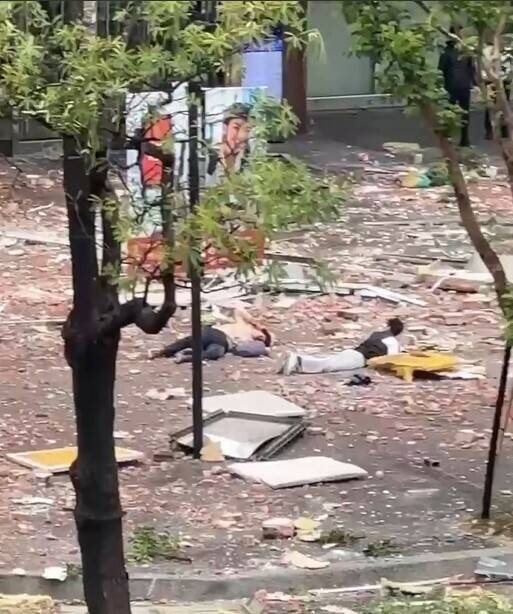 新光三越爆炸後,傷者倒臥地上等候救援。(民眾提供)