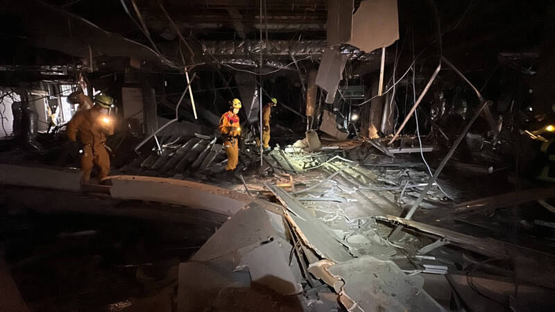 爆炸震動與巨響,連當時在台中市政府的盧秀燕都感受到。現場宛如遭轟炸過,還有被砸中或炸飛的民眾倒臥馬路旁哀嚎等待援救,現場一片凌亂。消防員帶著搜救太進入內部搜索,驚見天花板炸崩,管線器具被炸得扭曲變形,陸續救出電梯受困者。