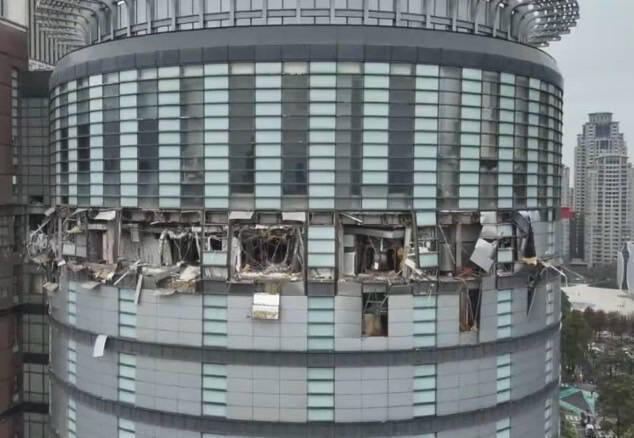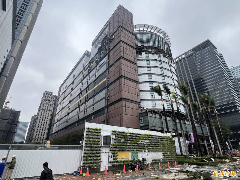 新光三越外牆炸出好幾個大洞。(台中市消防局提供)