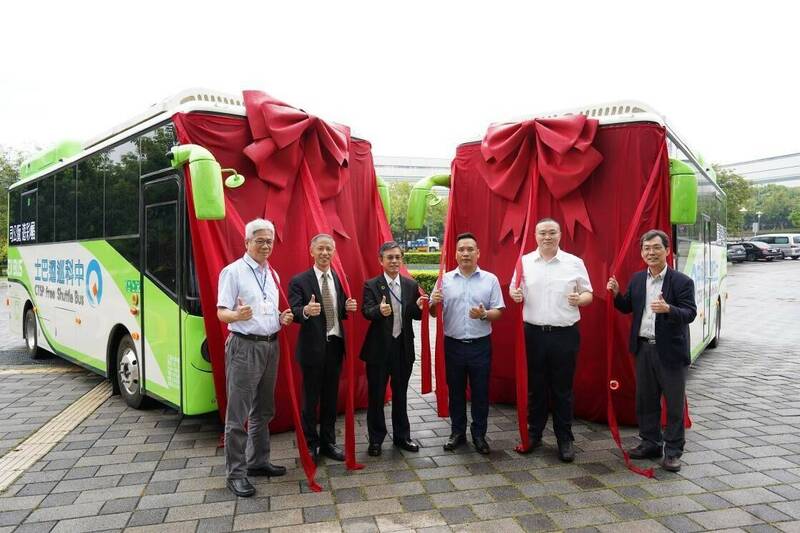 中科管理局今天啟用2輛全新免費巡迴電動巴士。(中科管理局提供)