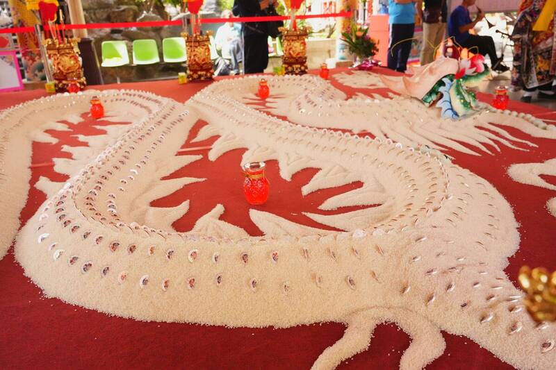 醒修宮表示,長達10公尺的米龍,是由30包、每包20公斤的白米所堆成,如同一條白龍盤旋,此外,白龍的身上還有2000多個錢母當作「龍鱗」,讓信徒吃得平安又有錢母象徵好財運,醒修宮18日開始送給信徒,送完為止。