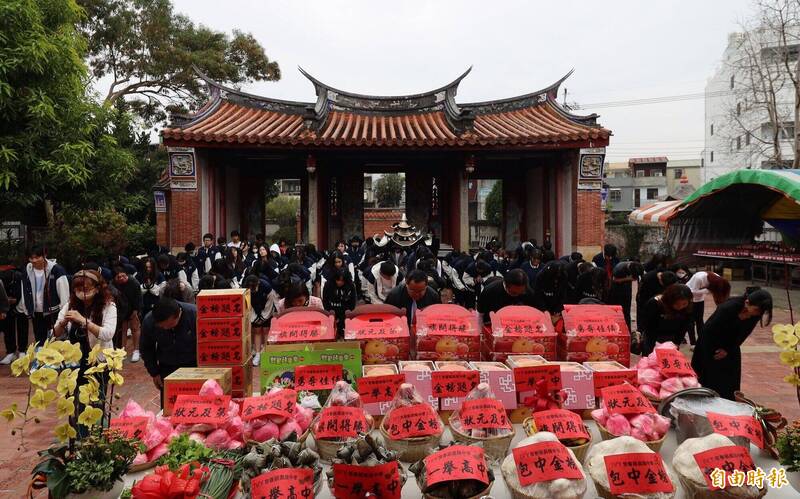 學測將登場一中「抬青蕉」 台中多校文昌廟祈福供品大陣仗