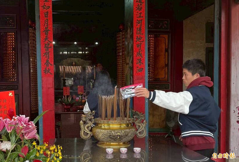台中一中老師為考生到萬和宮向文昌君祈福。(翻攝自校長臉書)