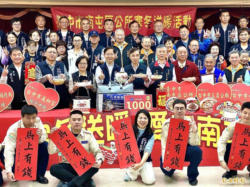 再過不到兩週就是馬年春節,南屯區25里里長化身愛心大使,由區長林秋萬穿主廚裝,與哥哥、南屯里長林秋潭將年菜物資送達弱勢家庭,區內知名廟宇萬和宮、文昌公廟捐贈暖被與禮券,家戶收到佛跳牆與雞湯等年菜,直呼「春節大禮包好暖」。