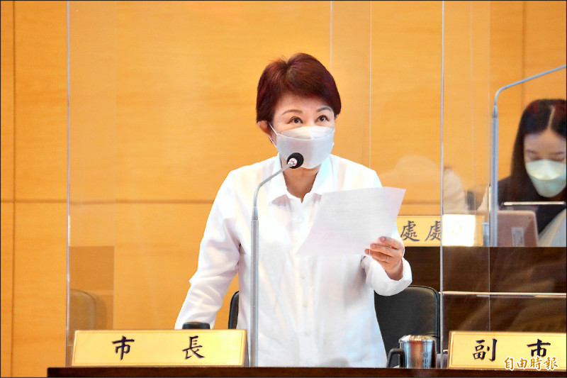 台中市長盧秀燕昨日在議會參加總質詢備詢,仍關心各地淹水災情。(記者蘇金鳳攝))