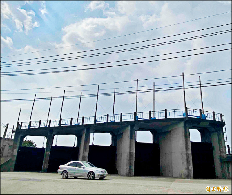 颱風逼近,大肚溪沿線閘門進行測試作業。(記者黃旭磊攝)