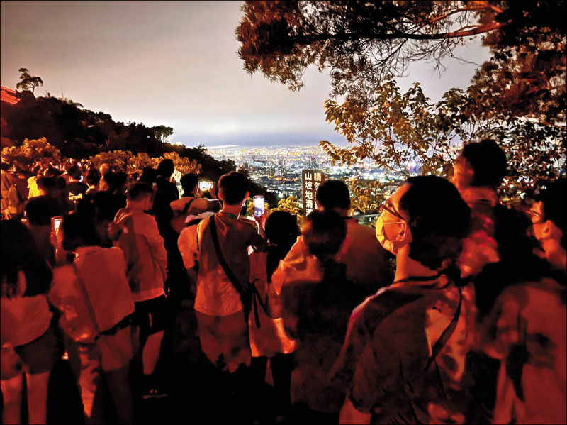 大批民眾在10日晚上前往公老坪丘逢甲紀念公園賞焰火,但前方有樹木遮擋。(民眾提供)