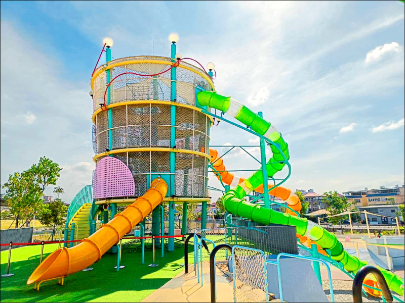 台中馬卡龍公園有十一公尺高溜滑梯吸引不少親子到遊