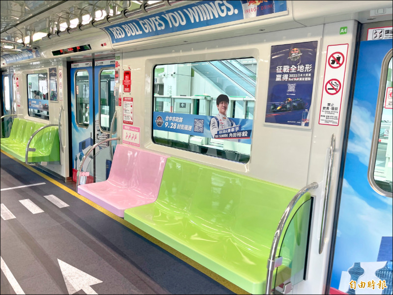 中捷彩繪車廂可跟賽車手角田裕毅同框拍照。(記者蘇孟娟攝)