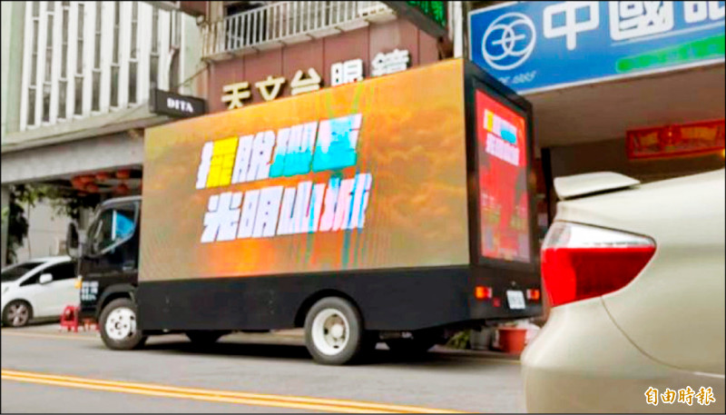 台中「擺脫瓔臣」LED宣傳車行駛豐原。 (記者張軒哲攝)