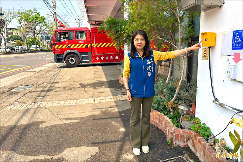 台中市議員吳瓊華爭取在烏日消防分隊裝設「觸控式號誌按鈕」,確保路口淨空,消防車、救護車出勤更迅速、安全。(記者陳建志攝)