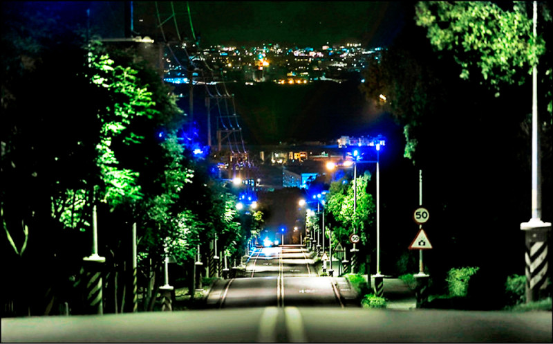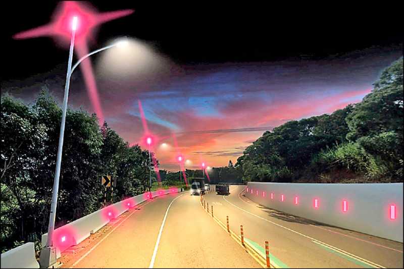 建設局將華山路規劃為「粉紅公路」,更換新型LED節能燈具,沿線的路燈桿增設粉色風格柱頂燈,並將原本灰色的水泥護欄及擋土牆粉刷為白色,搭配節能LED太陽能燈具與粉色反光片,提升夜間能見度與行車安全。
