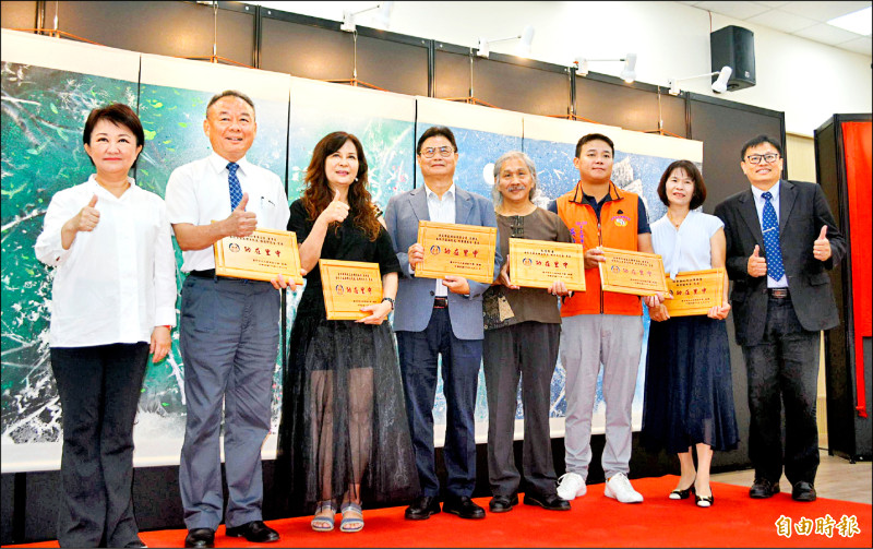 昨天揭牌後並舉辦「緣起不滅.萬殊之音—水墨行者何木火彩墨展」,展出其近期十九件精選作品,融合潑墨、重彩、寫意與抽象,畫面靈動飽滿,展現藝術家對家鄉自然山水的深情描繪。