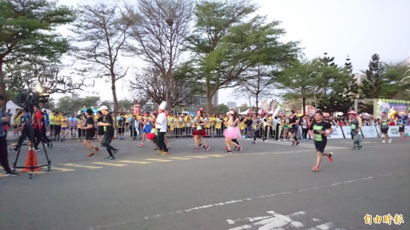 半馬組有跑者穿著廚師服或恐龍裝參賽。(記者劉婉君攝)