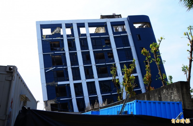 本來即將開幕的原飯店,強震後,結構受損,嚴重傾斜。(記者吳俊鋒攝)