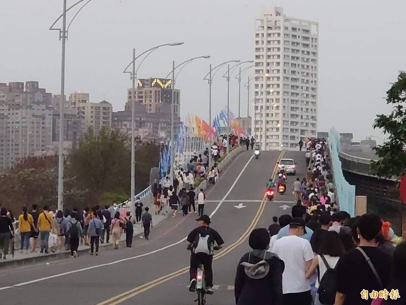 「2021漁光島藝術節」展至4月18日,每日上午10時至晚上7時,漁光大橋封閉交管。(記者洪瑞琴攝)