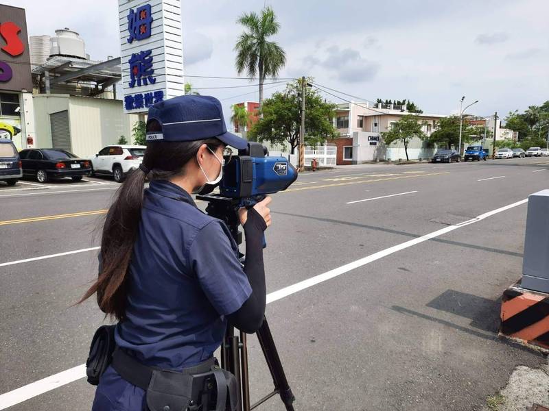 台南市六分局警方執行移動式測速照相。(圖:警方提供)