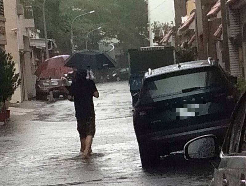 梅雨季節來臨,台南運河因閘門感應接觸不良,造成運河沿岸部分地區積淹水。(圖由李啟維提供)