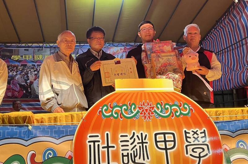 台南學甲區懷古燈謎晚會循例在元宵節晚上舉辦,並設有謎首,特地頒贈獎狀。(資料照,公所提供)