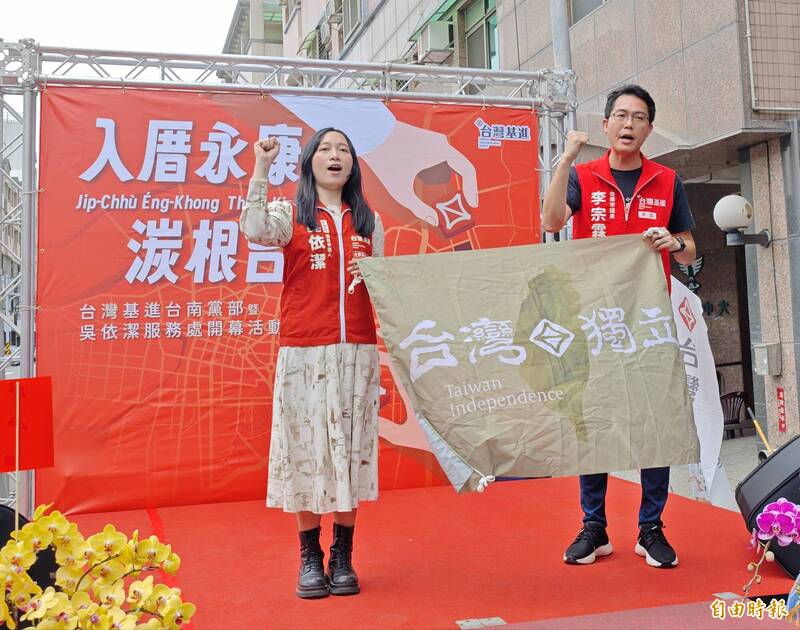 台灣基進台南黨部遷址永康區,今天舉辦開幕活動,新任主委吳依潔接下「台灣獨立」旗,誓言持續深耕基層,起造台獨基地,並將提升民防硬實力與文化軟實力,讓台南成為本土堡壘城市典範;市長黃偉哲與民進黨立委林宜瑾也到場,致詞時都鼓勵大罷免,終結藍白在國會的亂象。