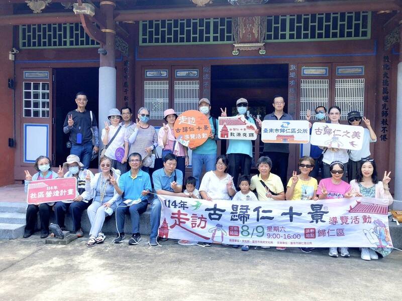 歸仁區公所在文化局社造計畫補助下,舉辦走訪古十景的導覽活動,探索地方之美,30位民眾參加,回響熱烈。