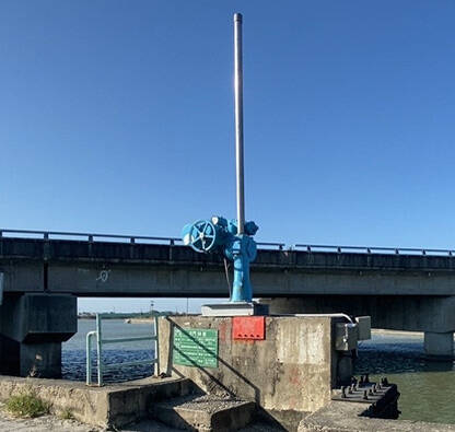 北門區38號水門改建完成,閘門水密性及操控性更佳。(台南市政府提供)