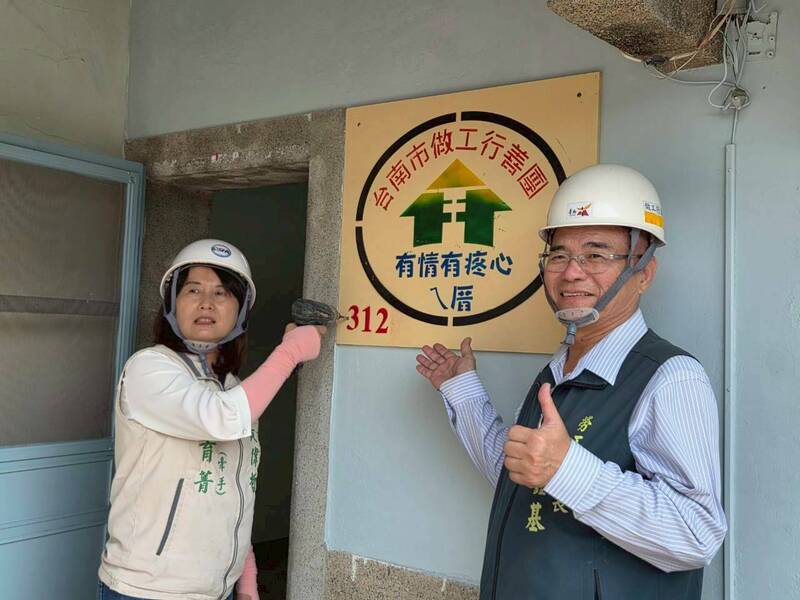 台南做工行善團今至關廟區修繕弱勢屋,吳姓案主為做工行善團完成的第312戶。(圖由南市勞工局提供)