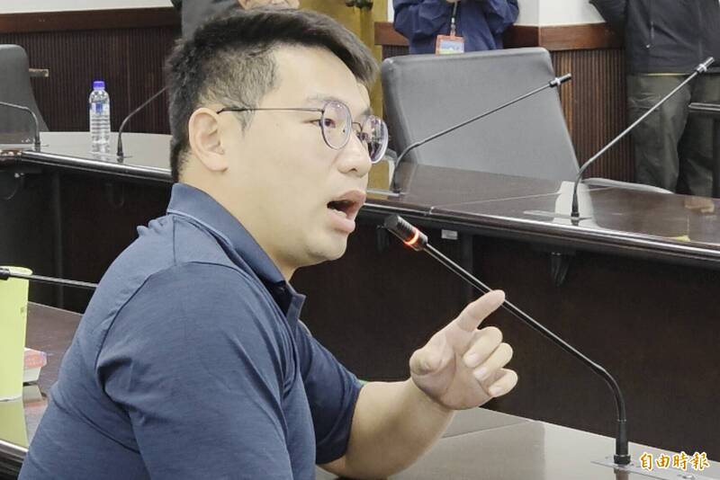 民進黨議員李宗翰聲援環保局長許仁澤,鼓勵他勇扛不要退陣。(記者洪瑞琴攝)