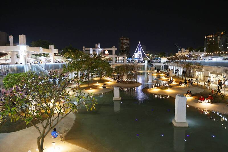 今年台南耶誕運河河樂燈區閃亮。(台南市府提供)